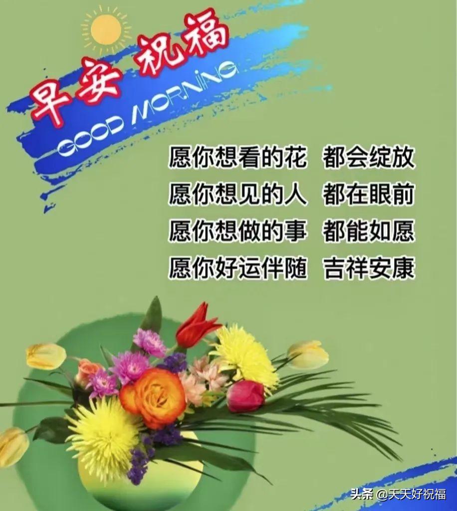 1. 心想事成千般好,平安二字无价宝,你好、我好、家人好,健康快乐最美好!早上好!