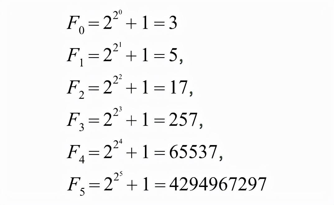- 前4个费马数是素数,4294967297 = 641 × 6700417