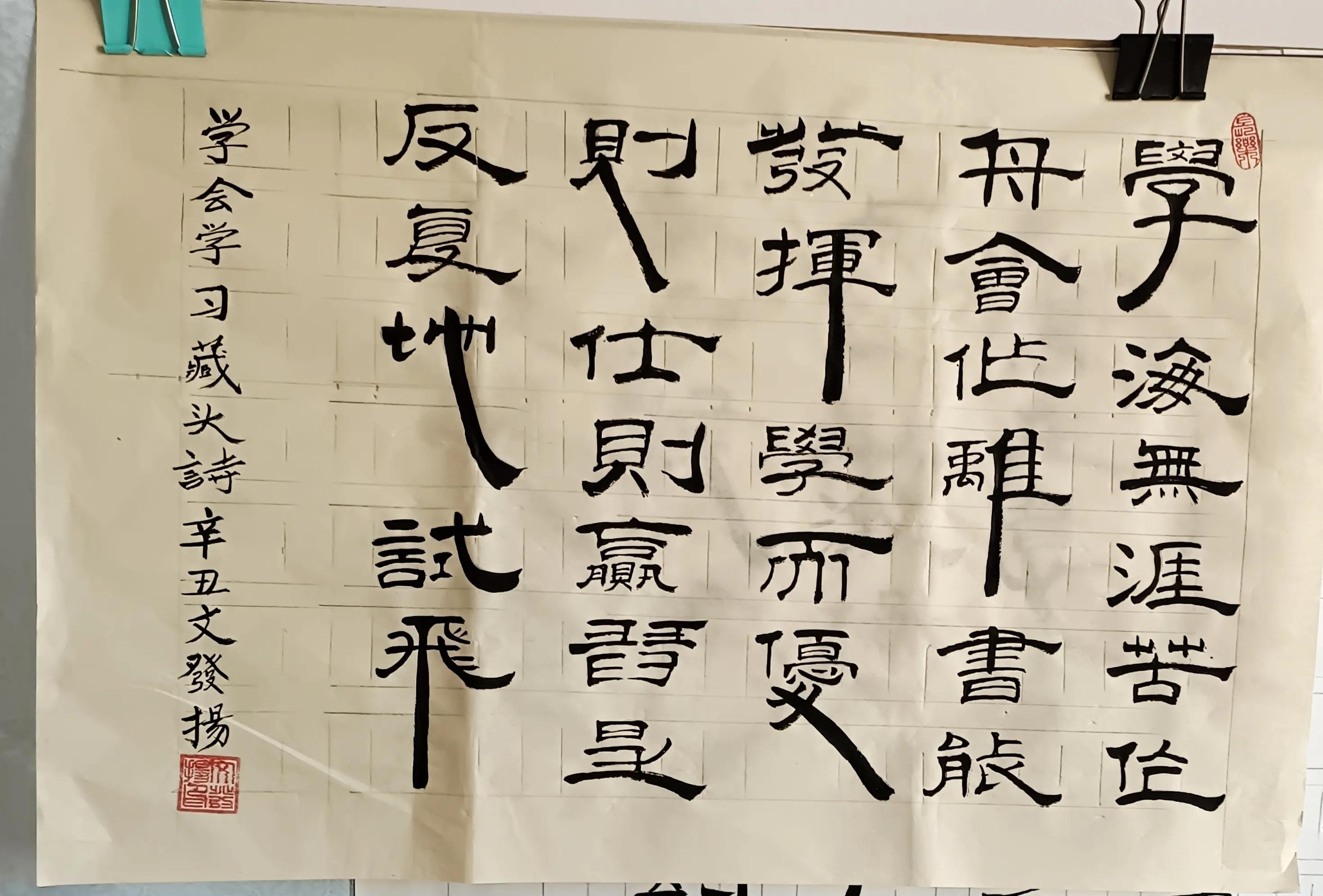 1,学,離,挥,优,则,地,飞等七个字,有一笔写的特别的粗又长。这个笔法叫帛书笔法或简书笔法。其他的字是汉碑隶书。