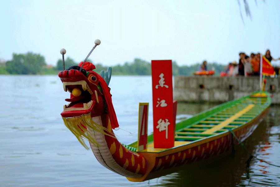 这首诗是写“竞渡”的名篇,把竞渡活动写得最为传神。“鼓声三下红旗开,两龙跃出浮水来。”鼓手敲鼓,声声震天;船桨翻飞,船像巨龙一样洋洋洒洒几十字,把竞渡的激烈场面、围观的喧嚣氛围描写得淋漓尽致。