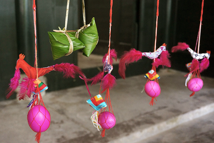 五色新丝缠角粽,