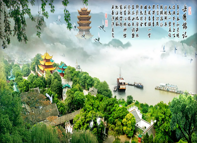 一篇《岳阳楼记》读领世界。《岳阳楼记》全文仅368个字,诞生于北宋庆历六年(1046),其文在河南邓州花州书院由范仲淹创作,官驿快递送往岳阳,由北宋著名诗人、书法家苏舜钦书石,著名篆刻家邵竦篆刻,以石屏风之形式立于岳阳楼内一楼正堂。此后数百年间,天下人争相传诵,世人将此文与滕子京重修岳阳楼、苏公书法、邵公篆刻并称为“巴陵四绝”。