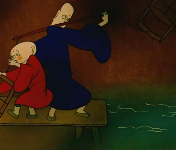 就这样,接下来几天都是悟空去山脚下挑水,一天悟空照常去挑水,而悟净却在水房里乐的手舞足蹈,悟空走出门外,想到每次都是我去挑水,太吃亏了,于是掉头回去对悟净喊道:师弟,快来,我们一起去挑水。
