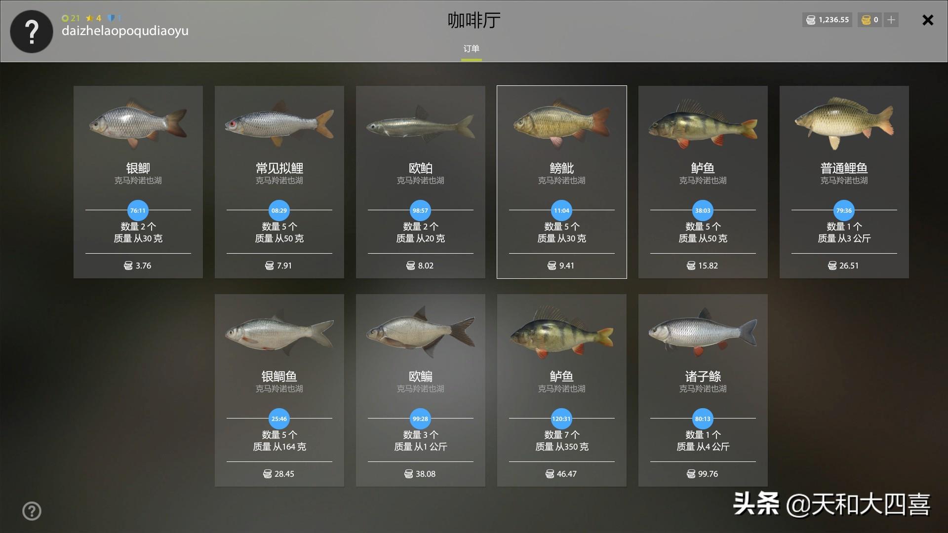 按E进入咖啡馆就可以看到当日老板需要的鱼种。