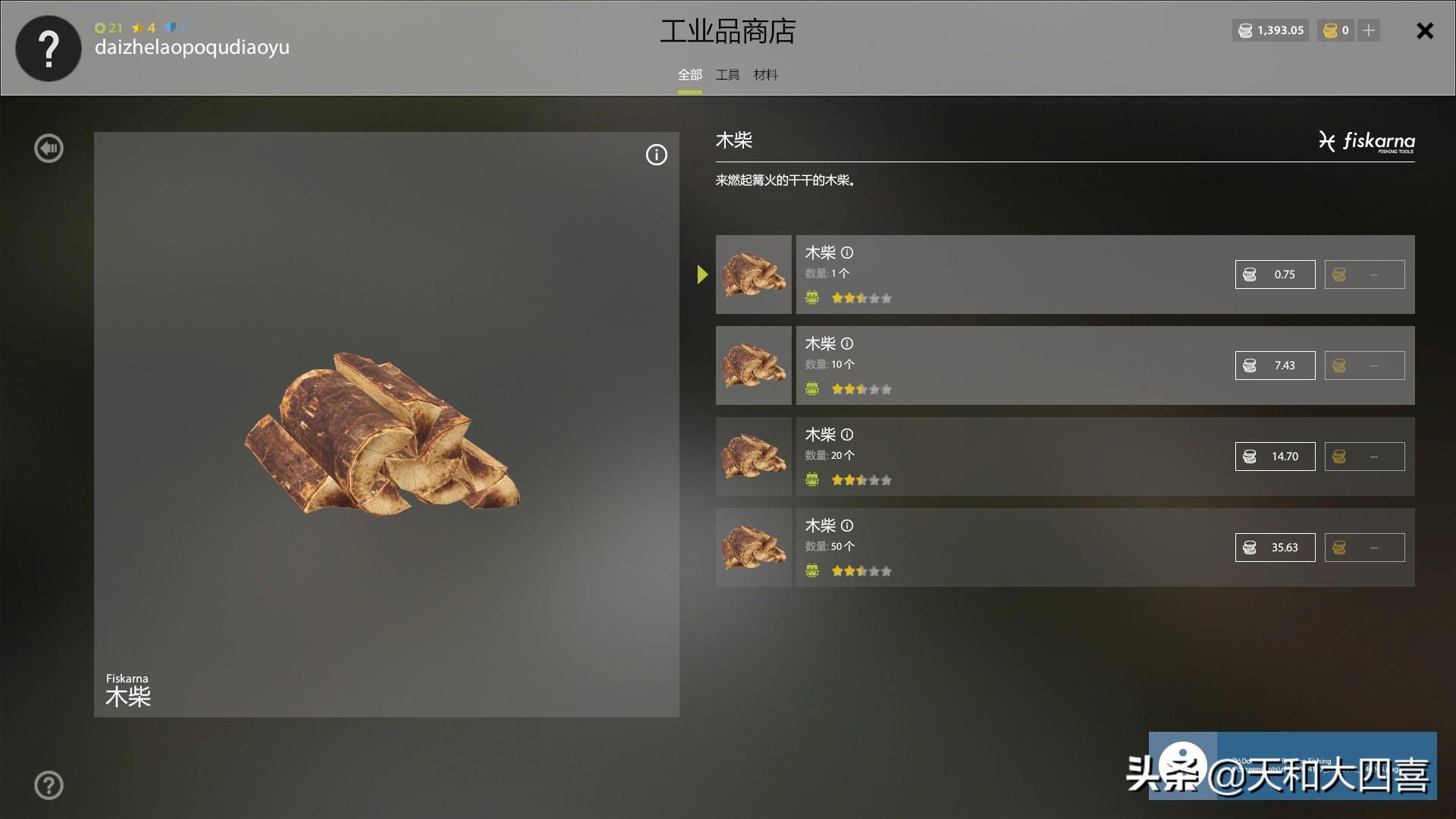 进入工业品商店后我们要购买茶壶、铁锹、火柴、木柴。