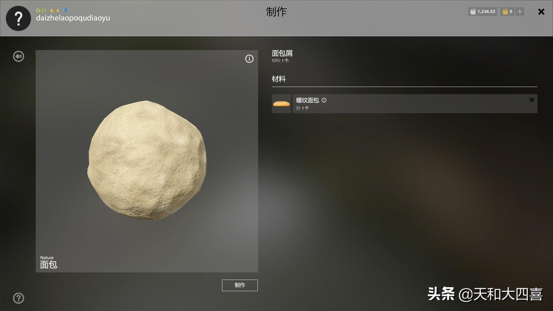 按照提示选择我们刚才在食品店购买的面包,然后点“制作”,这样我们的鱼饵——湿面包就制作完成了。