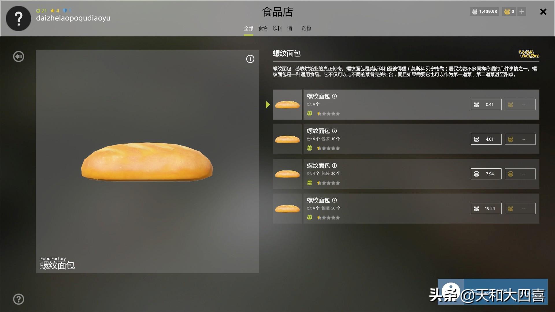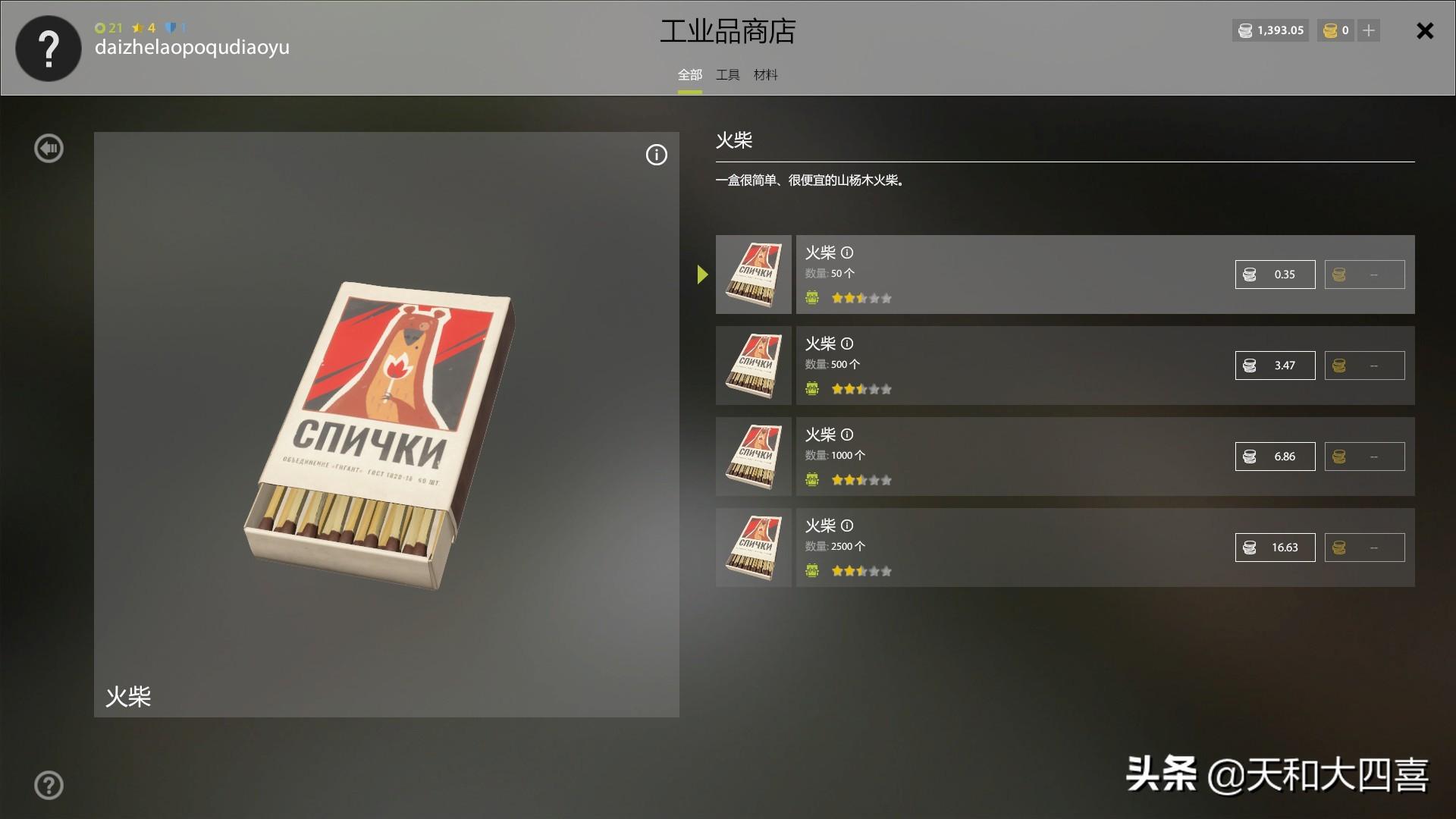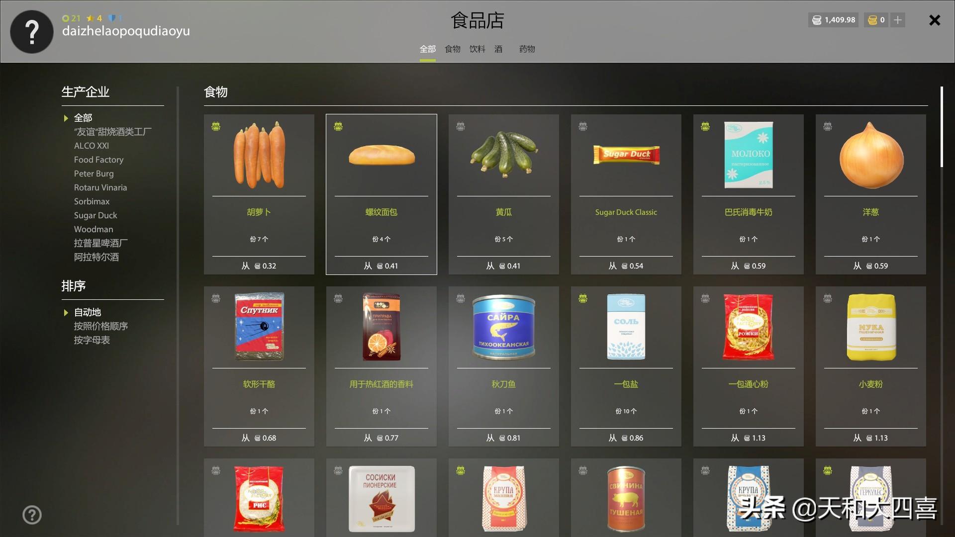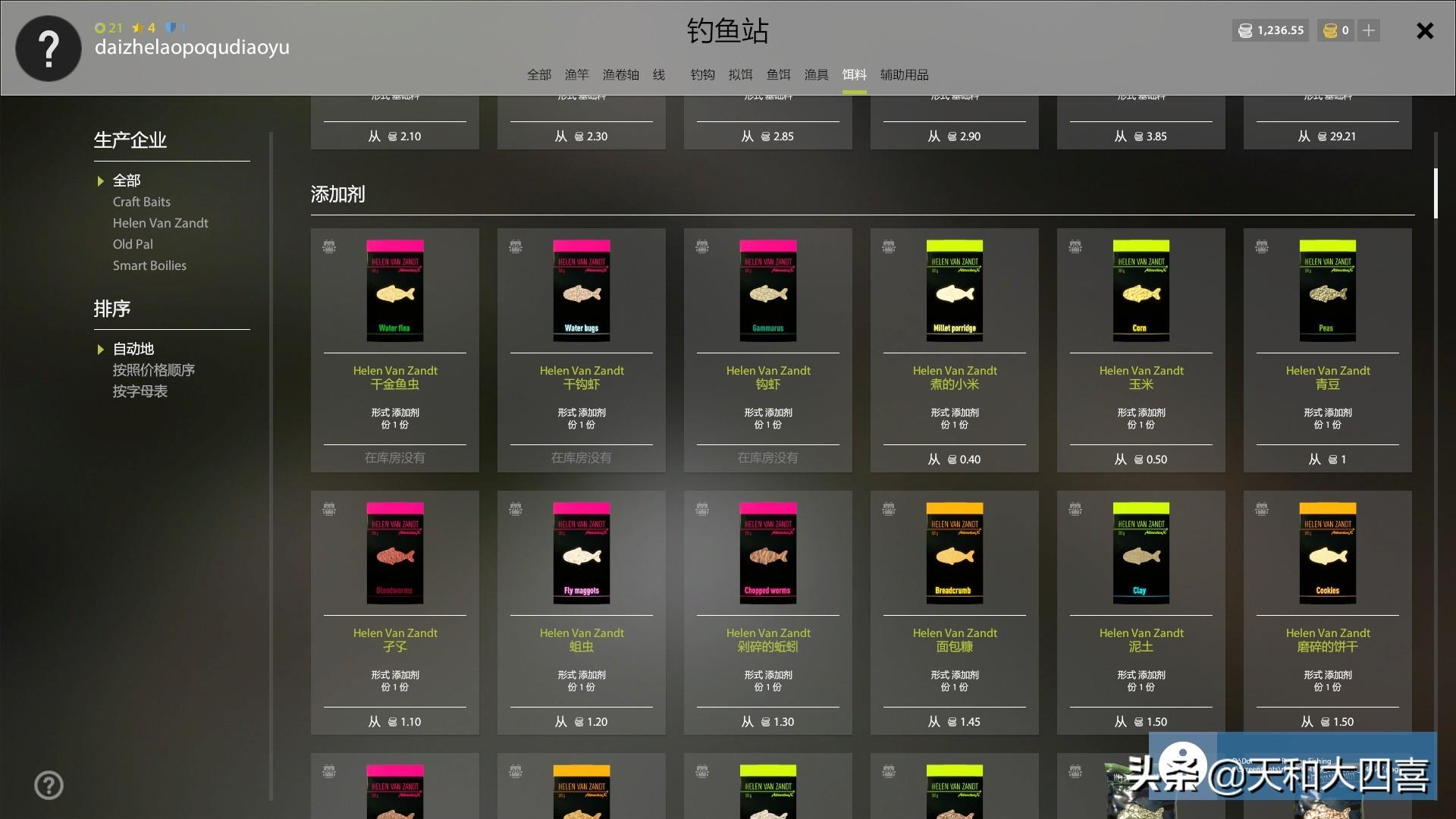 新人前期先买茶叶和面包,其他的不要买。茶叶我们可以做热饮,面包我们可以做鱼饵。