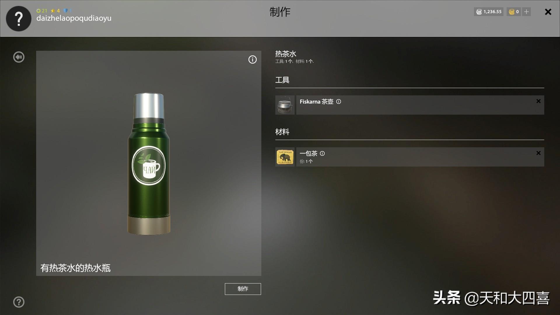 按E我们就可以制作热饮了,和制作饵料的步骤一样,按照提示操作即可。