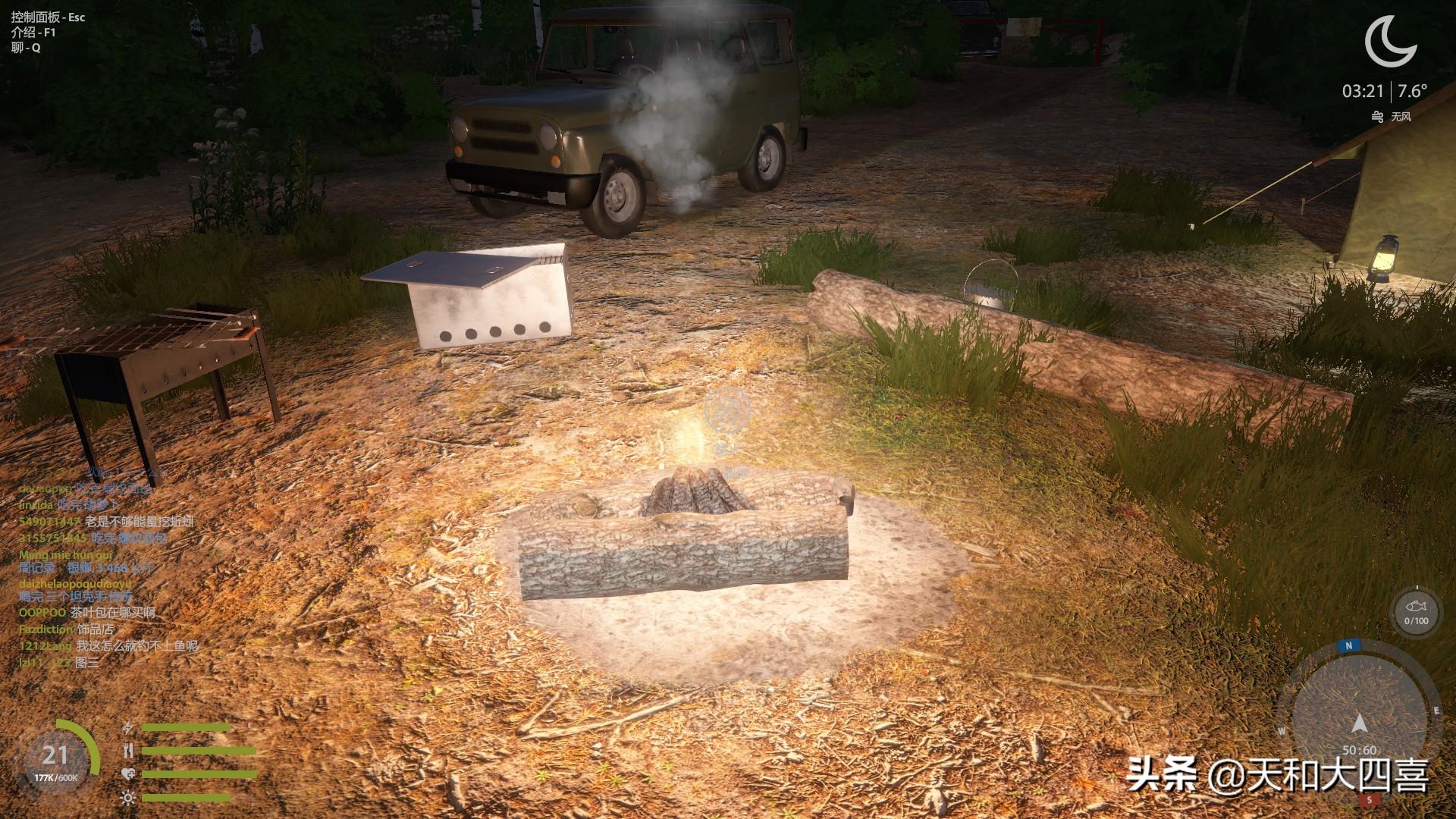 来到营地后我们就会发现地上有堆熄灭的篝火,我们按Y将其点燃。点燃篝火的前提条件是我们的背包里有火柴和木柴,否则是无法点燃的,这两样物品前面已经讲了需要在工业品商店里购买。