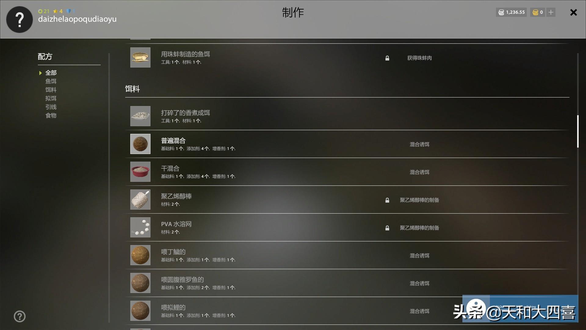 在渔具店购物完毕,我们就可以配置饵料和窝料了。按N键打开制作界面,选择制作面包。