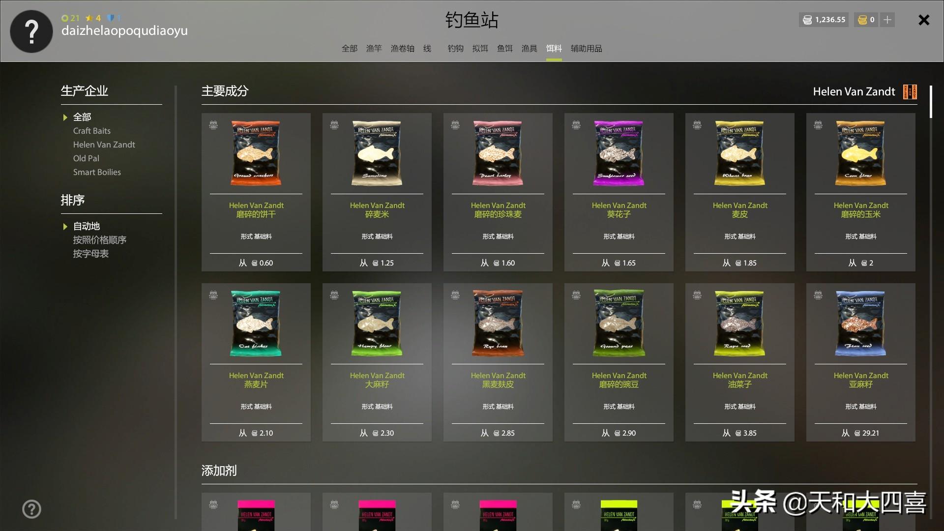 这4样东西是我们必须购买的,是我们今后钓鱼的必需品。我们再来到钓鱼用品商店购买必须的渔具。