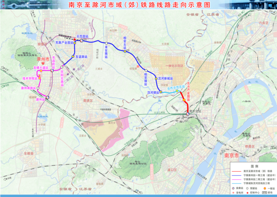 滁宁线起自南京北站,终至滁州站,路线全长约55.35公里,共设站17座,其中,南京段约5.7公里,设站2座。串联了南京江北新区、滁州城南新区、滁州经开区、苏滁产业园、来安县等区域。
