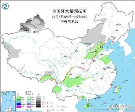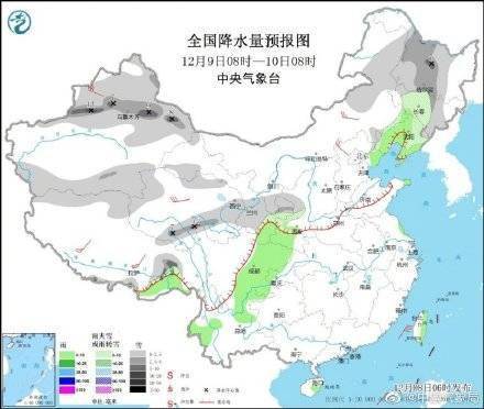 8至10日,内蒙古中东部、华北、东北等地有小到中雪,部分地区有大雪。8至9日,新疆北疆将有小到中雪,局地有大到暴雪。9日夜间至10日,西北地区东部、山西中南部有小到中雪或雨夹雪,部分地区大到暴雪。 10至12日,有一股中等强度冷空气影响长江中下游以北大部地区。华北、东北、黄淮、江淮等地有4~6级偏北风,气温将先后下降4~8℃。