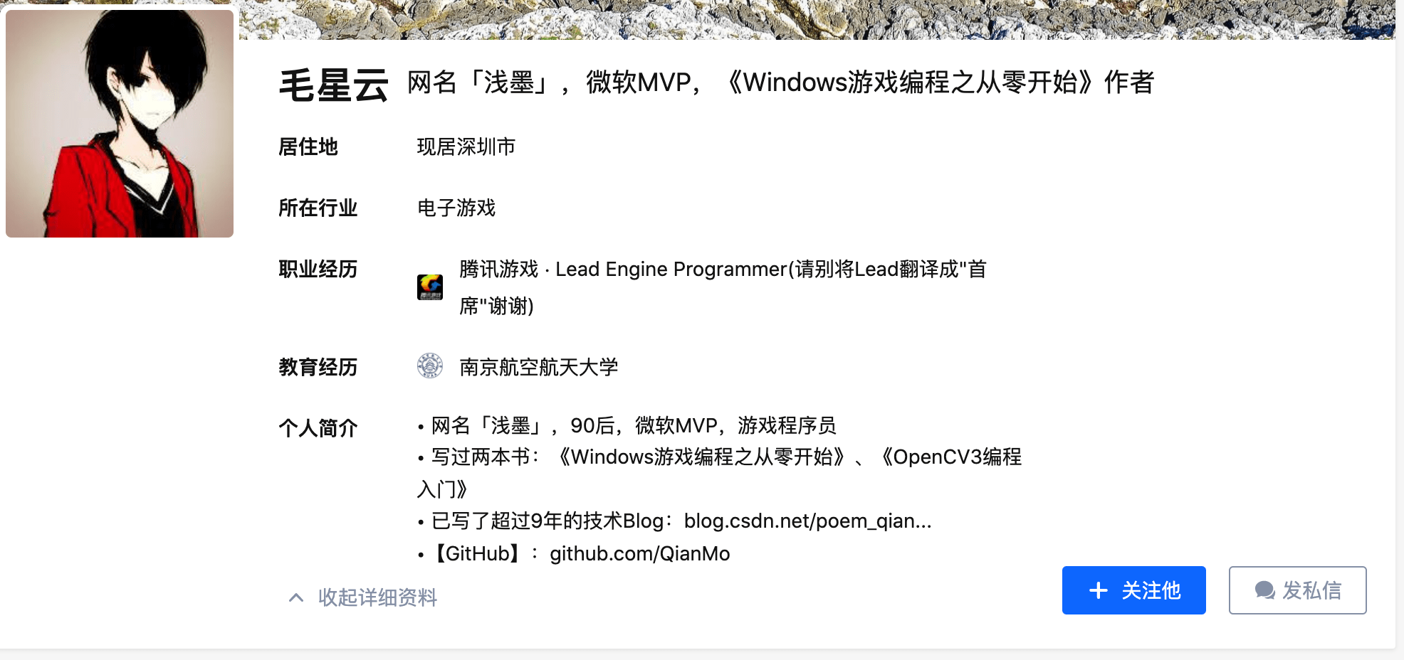据了解,毛星云系知名游戏程序员,其撰写的《Windows游戏编程之从零开始》在程序员中广为流传。得知毛星云意外身故的消息后,不少网友在其社交平台下留言缅怀。