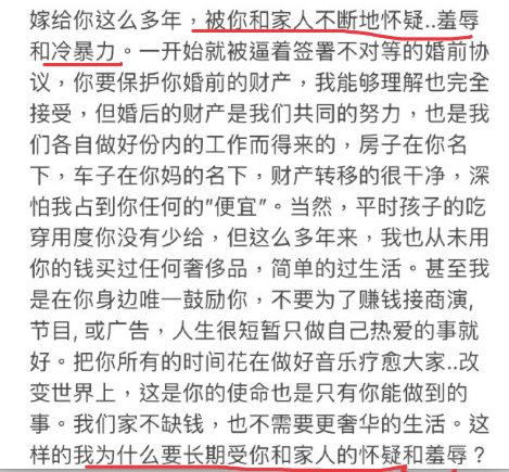 李靓蕾在信中直言,嫁给王力宏这么多年,一直被他和家人不断地怀疑、羞辱和冷暴力。甚至自己在这段感情中都是王力宏的一枚棋子。