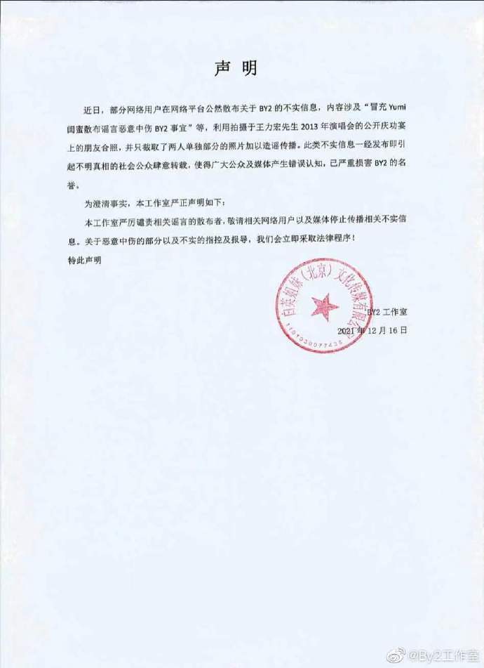随后,王力宏就被曝婚内出轨,BY2妹妹被卷入其中,双方都发紧急声明。
