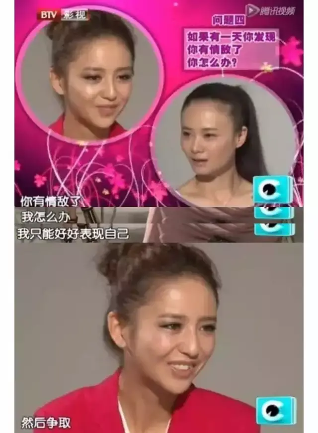 当被问及有情敌出现会怎么样,她的回答是:“我只能好好表现自己,然后争取。”
