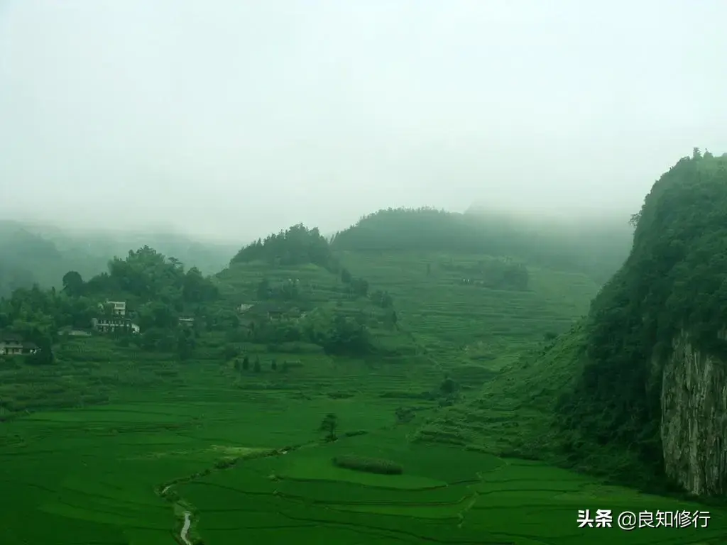 白水明田外,碧峰出山后。