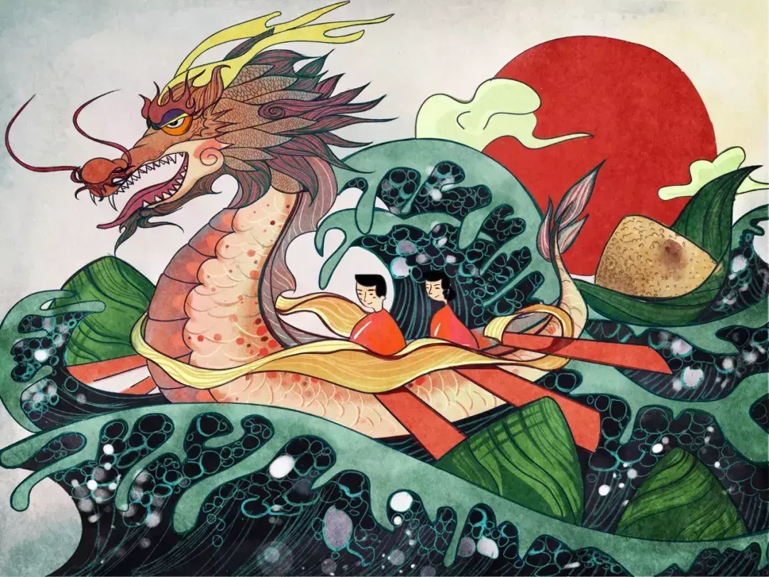 唐代时,划龙舟十分盛行,唐代的许多皇帝曾亲自观看龙舟竞赛。这首七言律诗,描绘了端午时节龙舟赛上,鼙鼓初击,兽头吐威,万人助喊,多船竞发的动人场景。