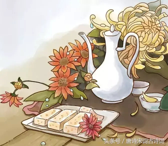魏晋时期,重阳节日气氛渐浓,有一个文人,叫做陶渊明,他不仅以隐居出名,以诗出名,以酒出名,尤以爱菊出名。酒能祛百虑,菊解制颓龄。秋菊有佳色,裛露掇其英。赏菊、饮酒、作诗,后人争相效仿, 唐代崔曙的《九日登望仙台呈刘明府容》用典考究,简要解读也就是一句话,南山黄花隐,谁人不思陶。