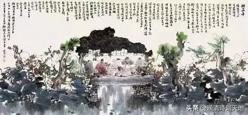 永和九年,岁在癸丑,暮春之初,会于会稽山阴之兰亭,修禊事也。群贤毕至,少长咸集。此地有崇山峻岭,茂林修竹,又有清流激湍,映带左右,引以为流觞曲水,列坐其次。虽无丝竹管弦之盛,一觞一咏,亦足以畅叙幽情。