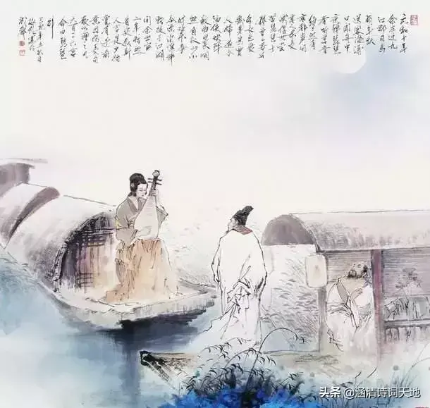 浔阳江头夜送客,枫叶荻花秋瑟瑟。主人下马客在船,举酒欲饮无管弦。醉不成欢惨将别,别时茫茫江浸月。