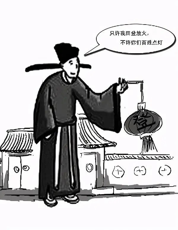 本地人却怨了,你太守平时蛮横霸道就算了,元宵节还要放火三天。于是那个州的人逢人便说:只许州官放火,不许百姓点灯,这是什么世道!