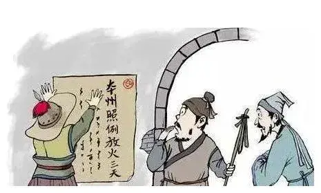 后来官员想了半天决定用火字代替灯字。这样,告示上就写成了本州照例放火三日。