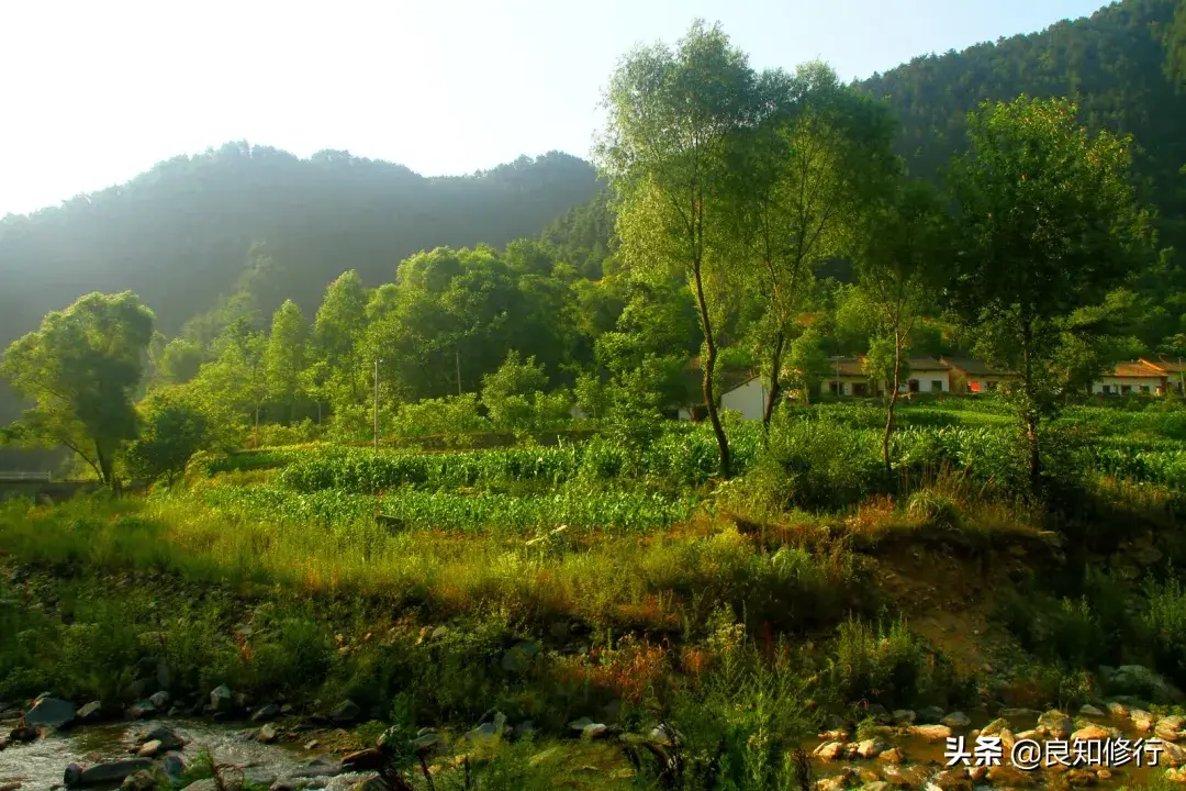 白水明田外,碧峰出山后。